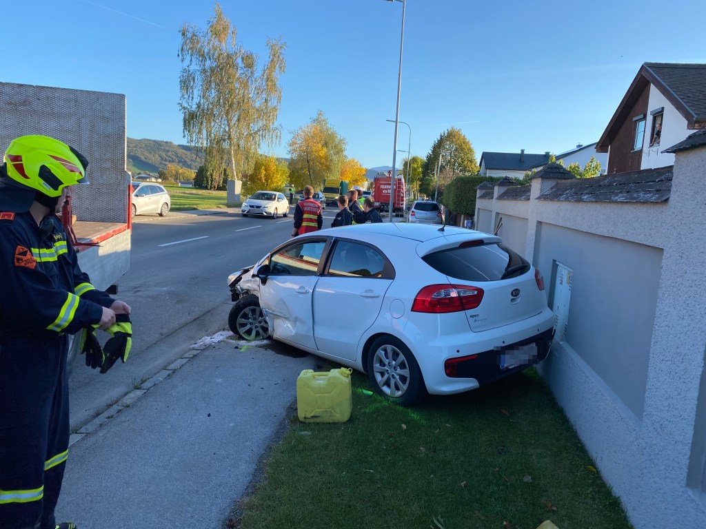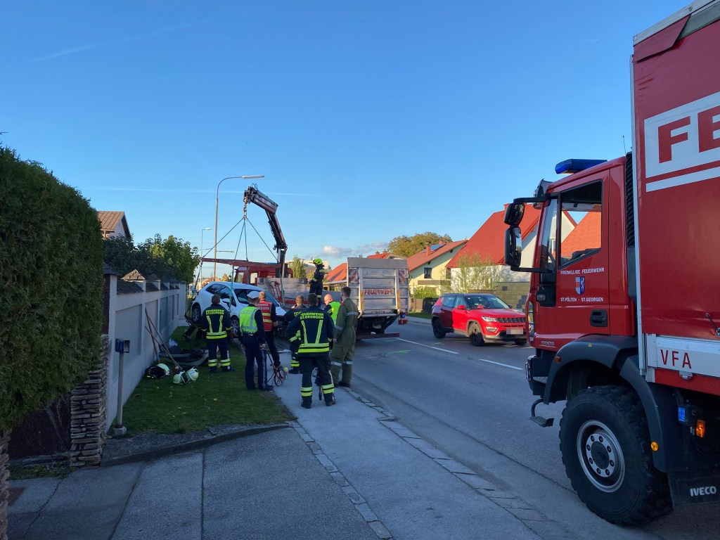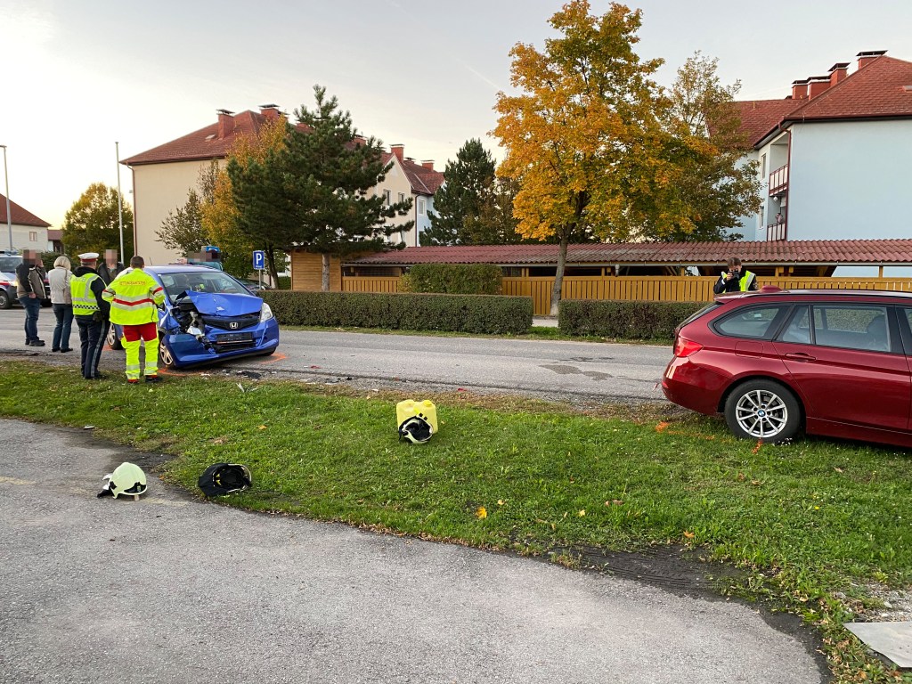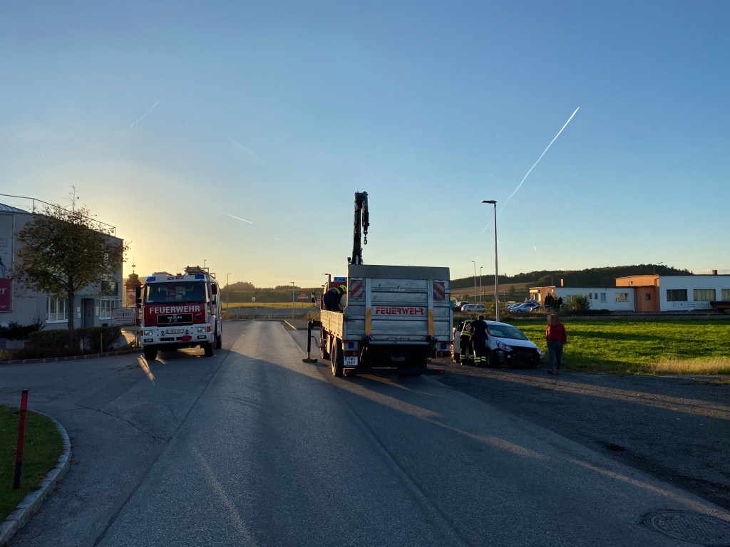 Gerade als der erste Einsatz abgeschlossen war, wurde die FF St. Pölten-St. Georgen zu einem weiteren Einsatz gerufen. Erneut stießen 2 PKWs aus unbekannter Ursache zusammen. Da die Einsatzstelle auf unserem Heimweg lag, baten wir noch unsere Hilfe an, bis abgeklärt wurde, ob unser Kran nochmals benötigt wird.