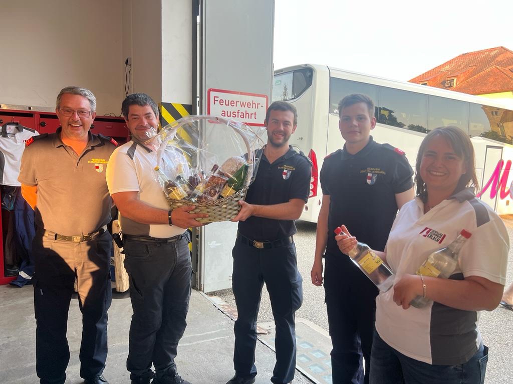 Nach dem Bewerb fand noch ein gemütliches Beisammensitzen im Feuerwehrhaus statt, wo noch das ein oder andere Geschenk ausgetauscht wurde.