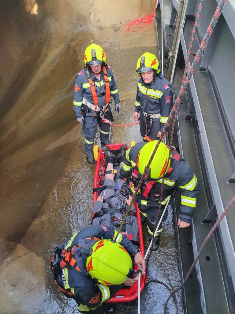 Seit Anfang des Jahres ist das neue Kraftwerk nun in Betrieb. Vor ca. einem Monat gab es die erste Begehung um festzustellen welche Rettungsausrüstung im Ernstfall von Nöten ist, gestern wurde dieses dann durch die EVN an uns übergeben und sofort eine Übung damit durchgeführt.