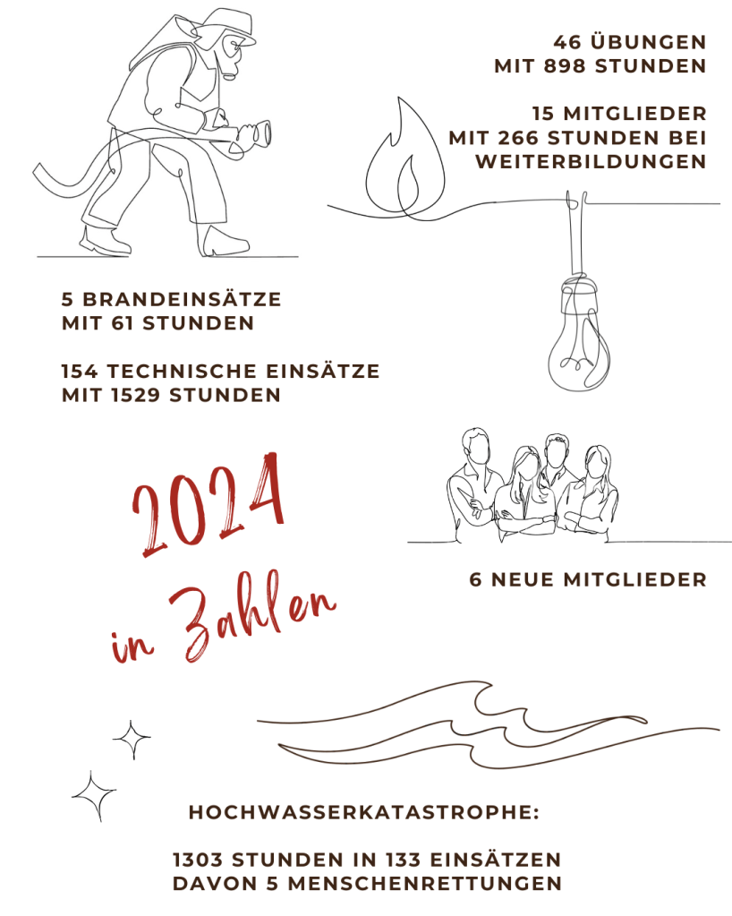 - zwei erfolgreiche Veranstaltungen: unser Feuerwehrfest im Juli 2024 und die 3. Ochsenburger Wintersonnenwende im Dezember 2024