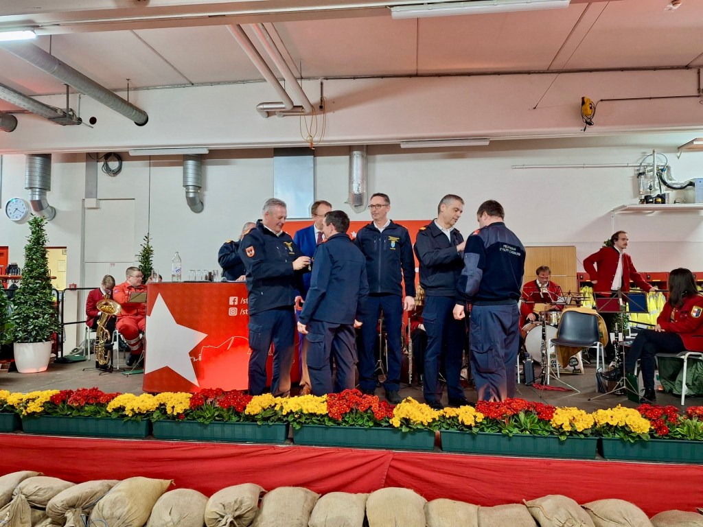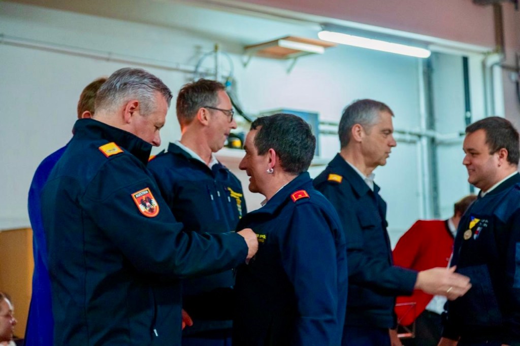 Es wurde auf die herausfordernden Einsätze der Hochwasserkatastrophe 2024 zurückgeblickt, Erfahrungen in kameradschaftlicher Runde ausgetauscht und der unermüdliche Einsatz der Kamerad:innen geehrt.