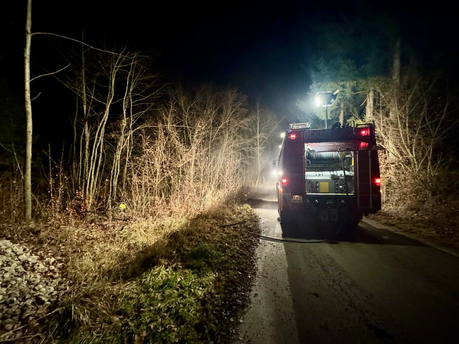 Am Mittwoch, den 03. Dezember 2025, wurden wir zu einem Schadstoffeinsatz alarmiert. In einem Bach in Ochsenburg wurde ein Betriebsmittelaustritt gemeldet.