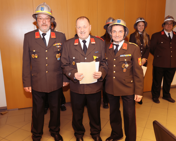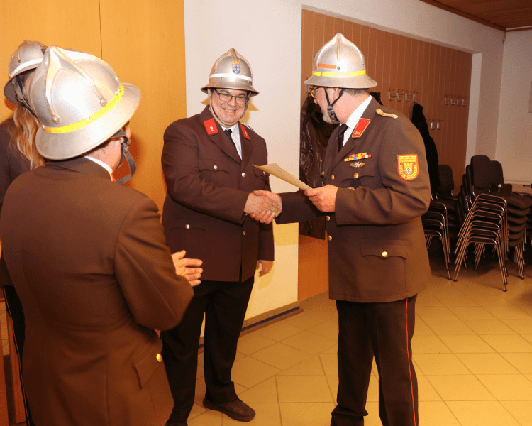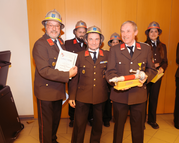 Der offiziellen Angelobung des wiedergewählten Kommandos durch Bürgermeister Matthias Stadler folgten die Angelobungen, Beförderungen und Ernennungen. In Zuge dessen wurde zwei Mitgliedern für ihre langjährige verdienstvolle Tätigkeit im Feuerwehr- und Rettungswesen gedankt.