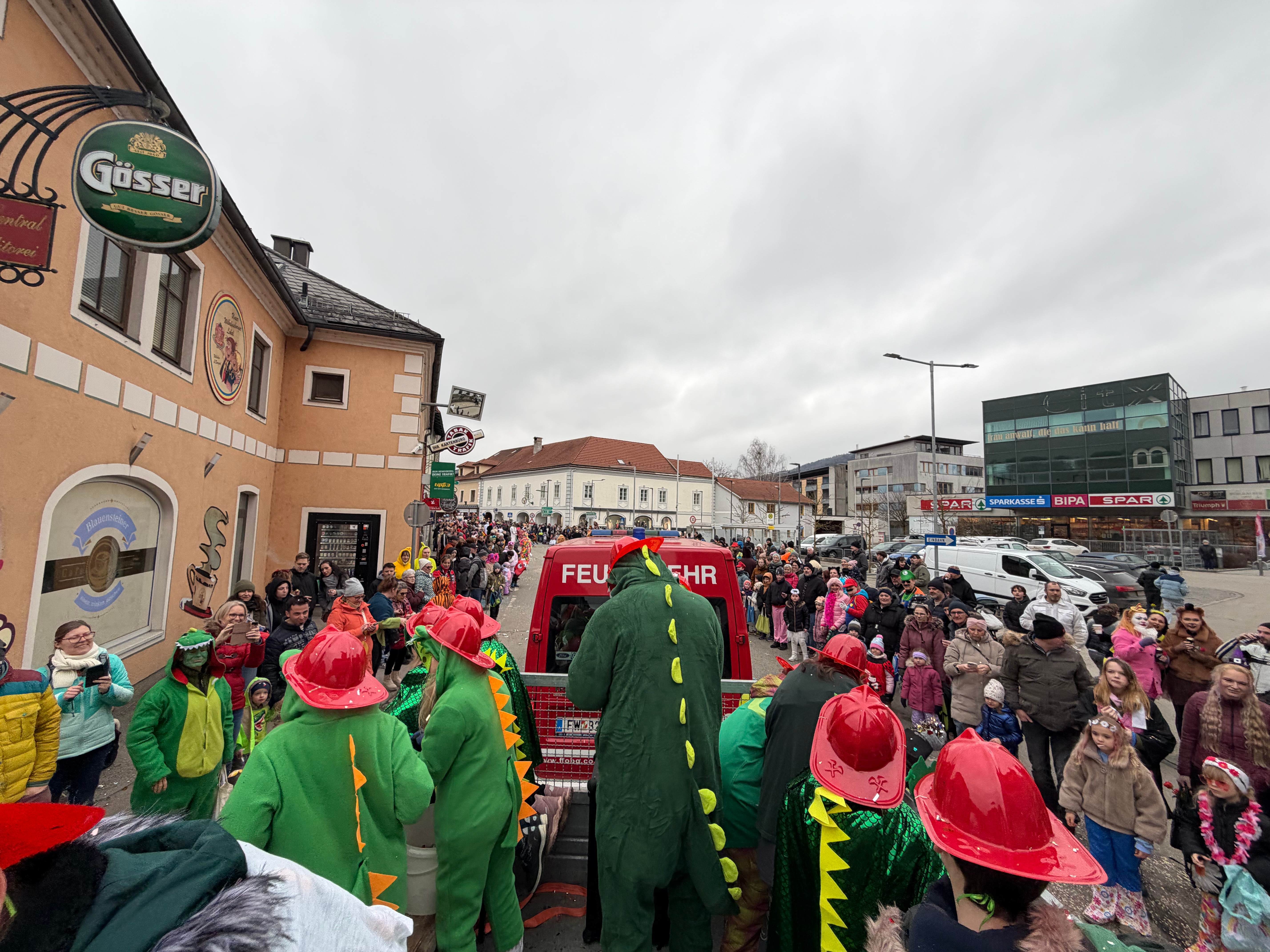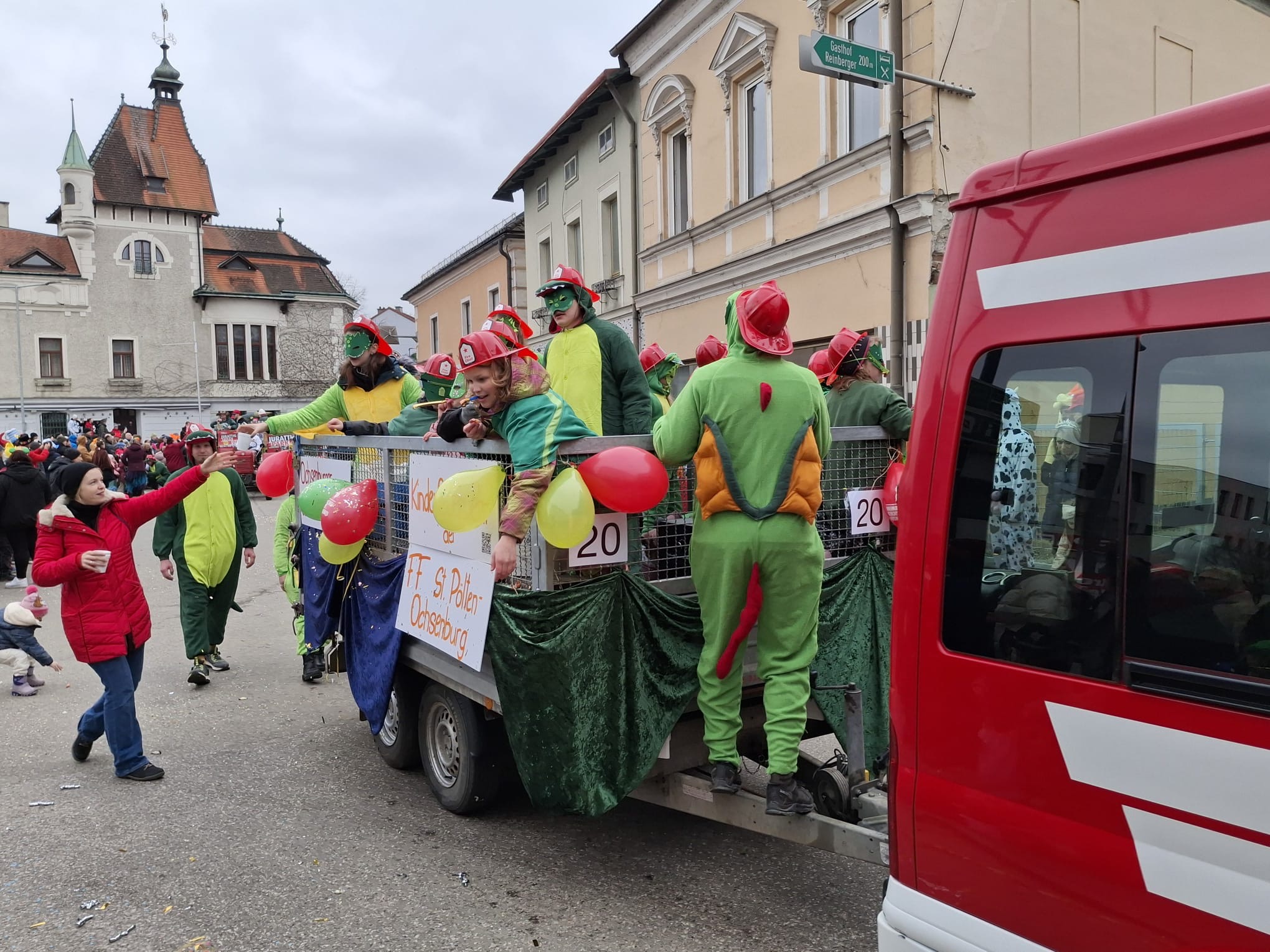 Mit Musik, Blaulicht und guter Laune zogen die jungen Heldinnen und Helden mit dem Kids-Team durch Wilhelmsburg bis zum Hauptplatz. Als Ochsenburger Wasserdrachen verzauberten sie die Zuschauer:innen, verteilten eifrig Zuckerl und tanzten zu ihrem eigens kreierten Lied. Ein Nachmittag voller Action und Spaß am Faschingswagen!